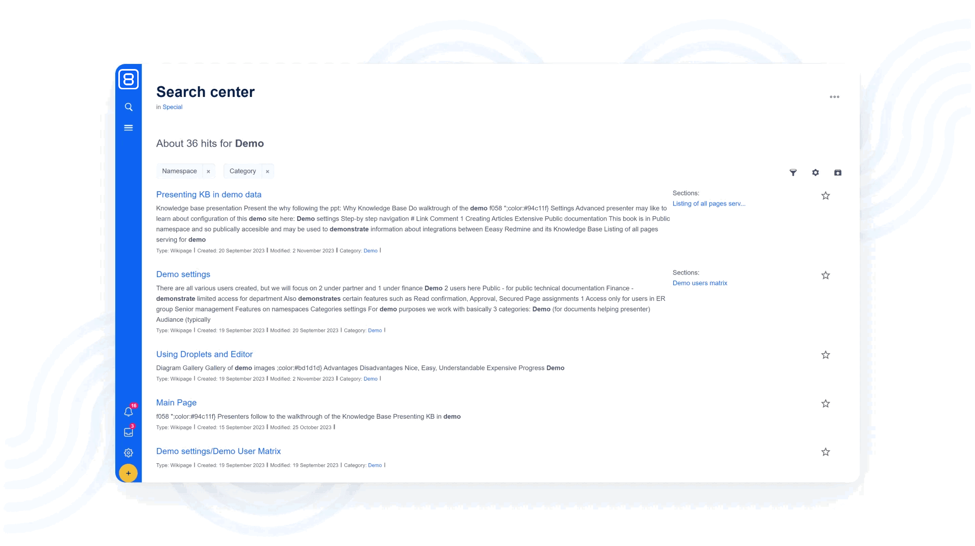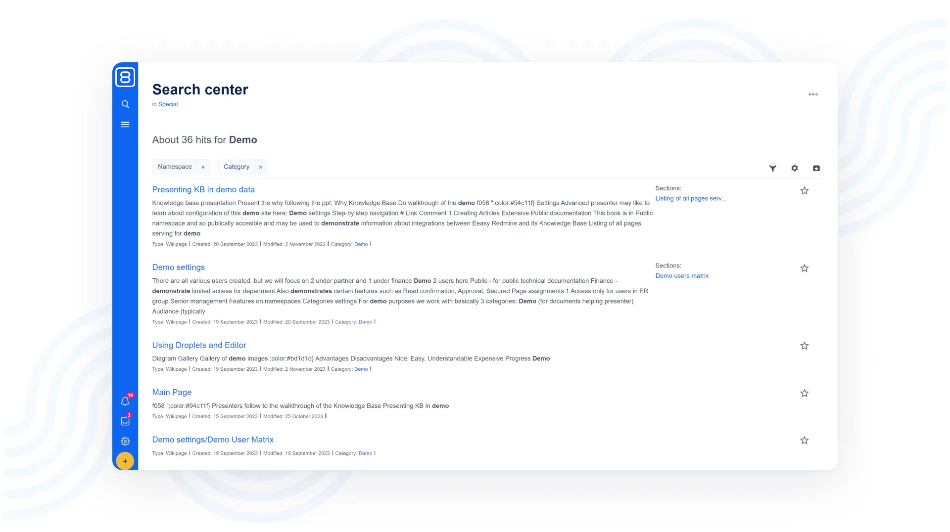 Reúne información dispersa y crea una colección cohesiva y organizada con una estructura y jerarquía claras. Esta funcionalidad te permite desarrollar grandes documentaciones de cualquier tipo sin dolores de cabeza innecesarios.