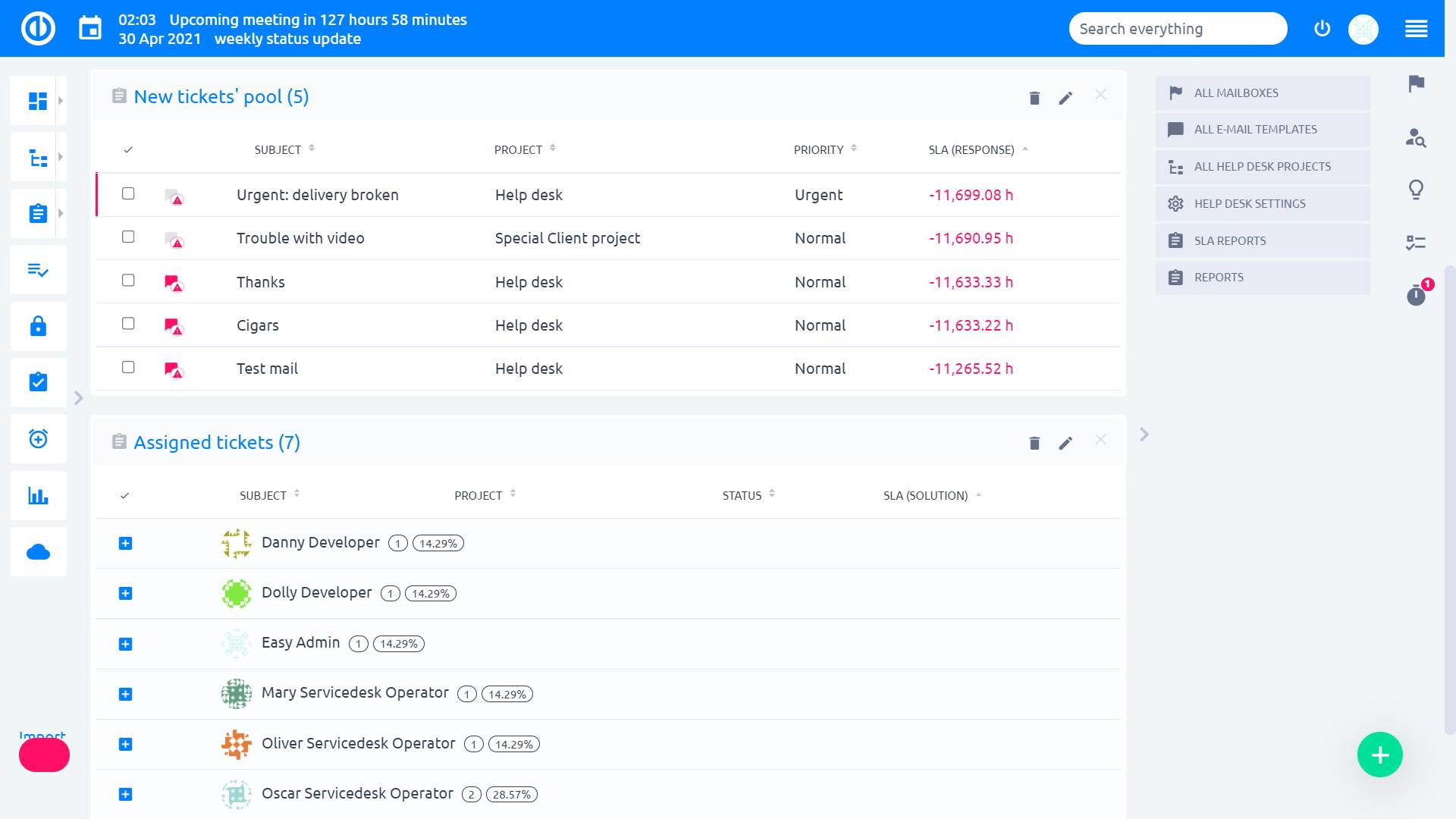 - De nouveaux tableaux de bord pour les opérateurs Helpdesk
