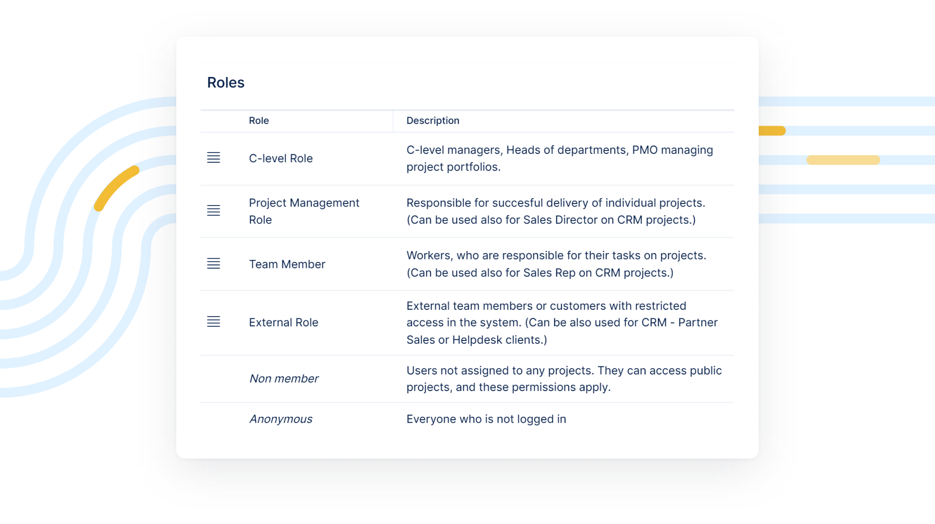 La possibilité de choisir des rôles parmi ceux les plus courants dans l’organisation