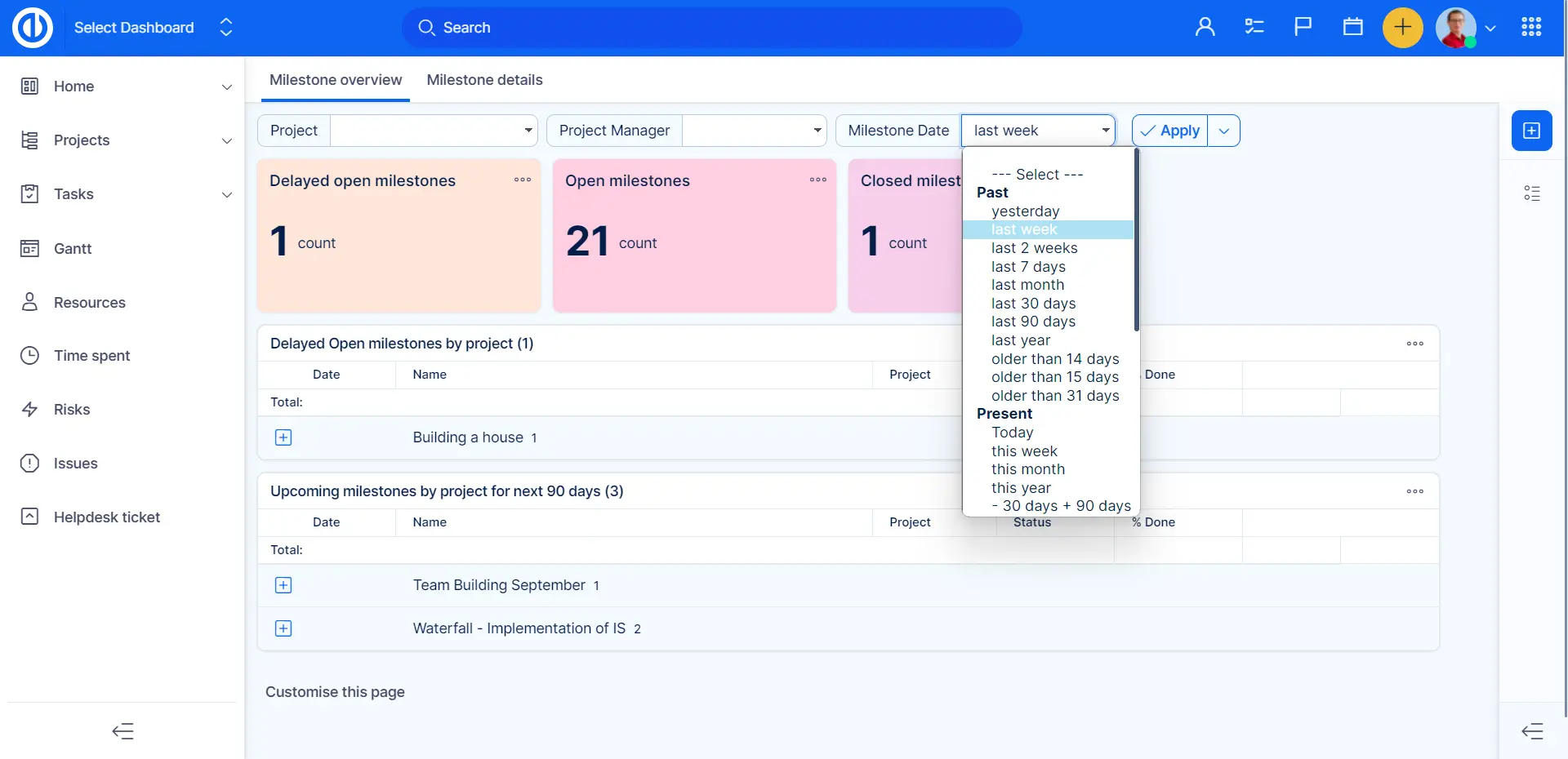 - Obtenez une vue d'ensemble parfaite des jalons du projet