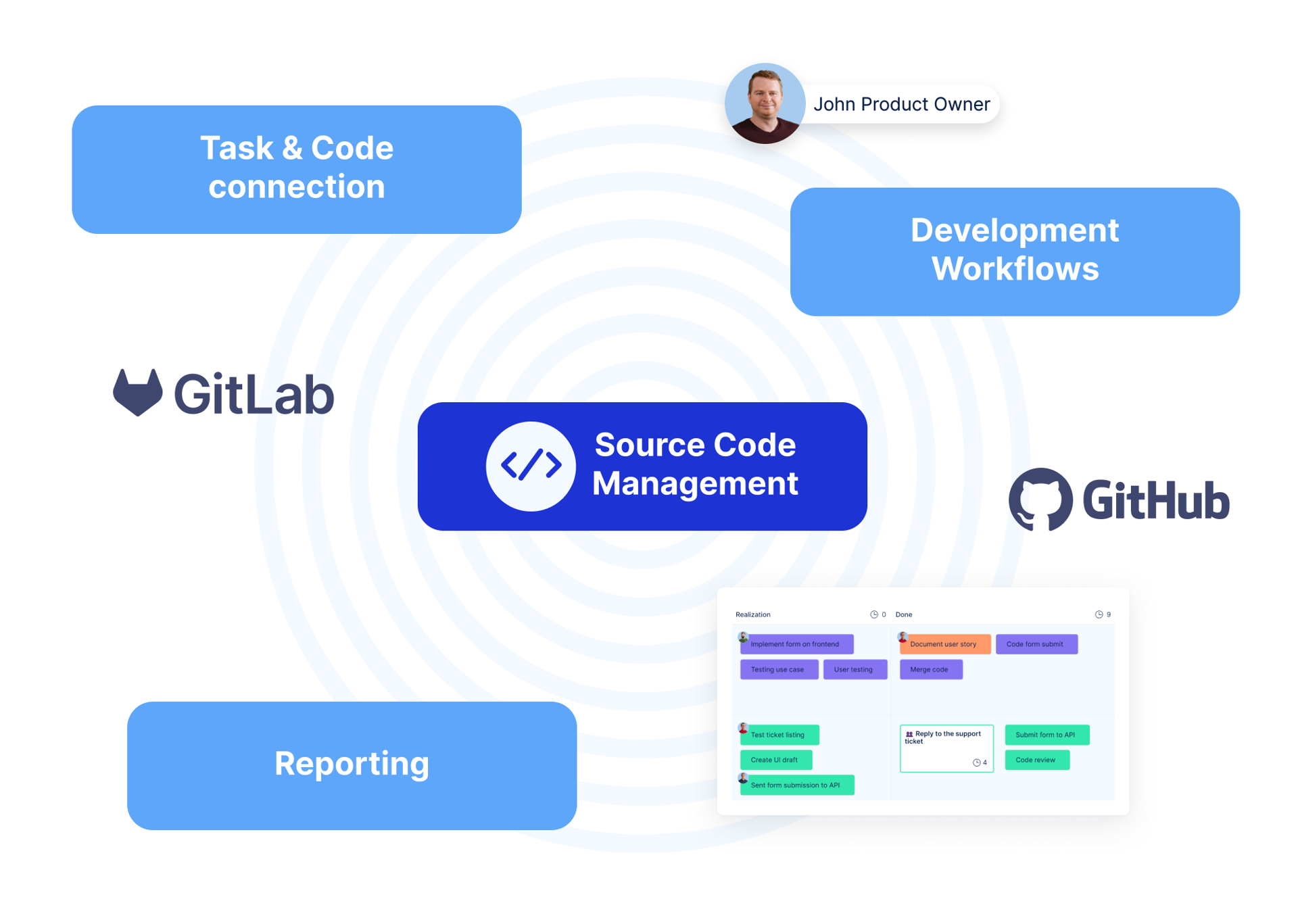 SCM connecte les développeurs directement avec les tâches de gestion de projet, garantissant que toutes les activités de développement sont suivies et alignées avec les objectifs du projet.