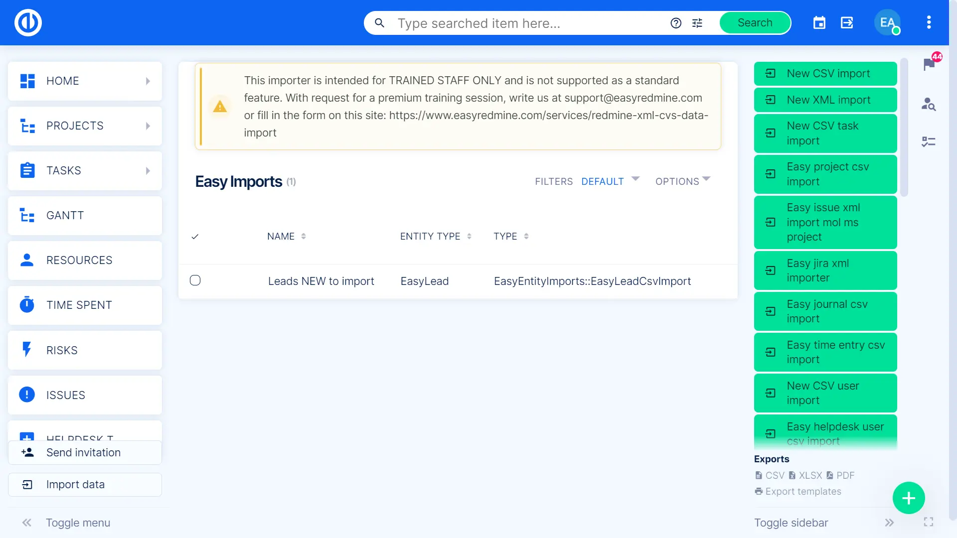 - Importez des projets et des tâches avec des attributs élémentaires