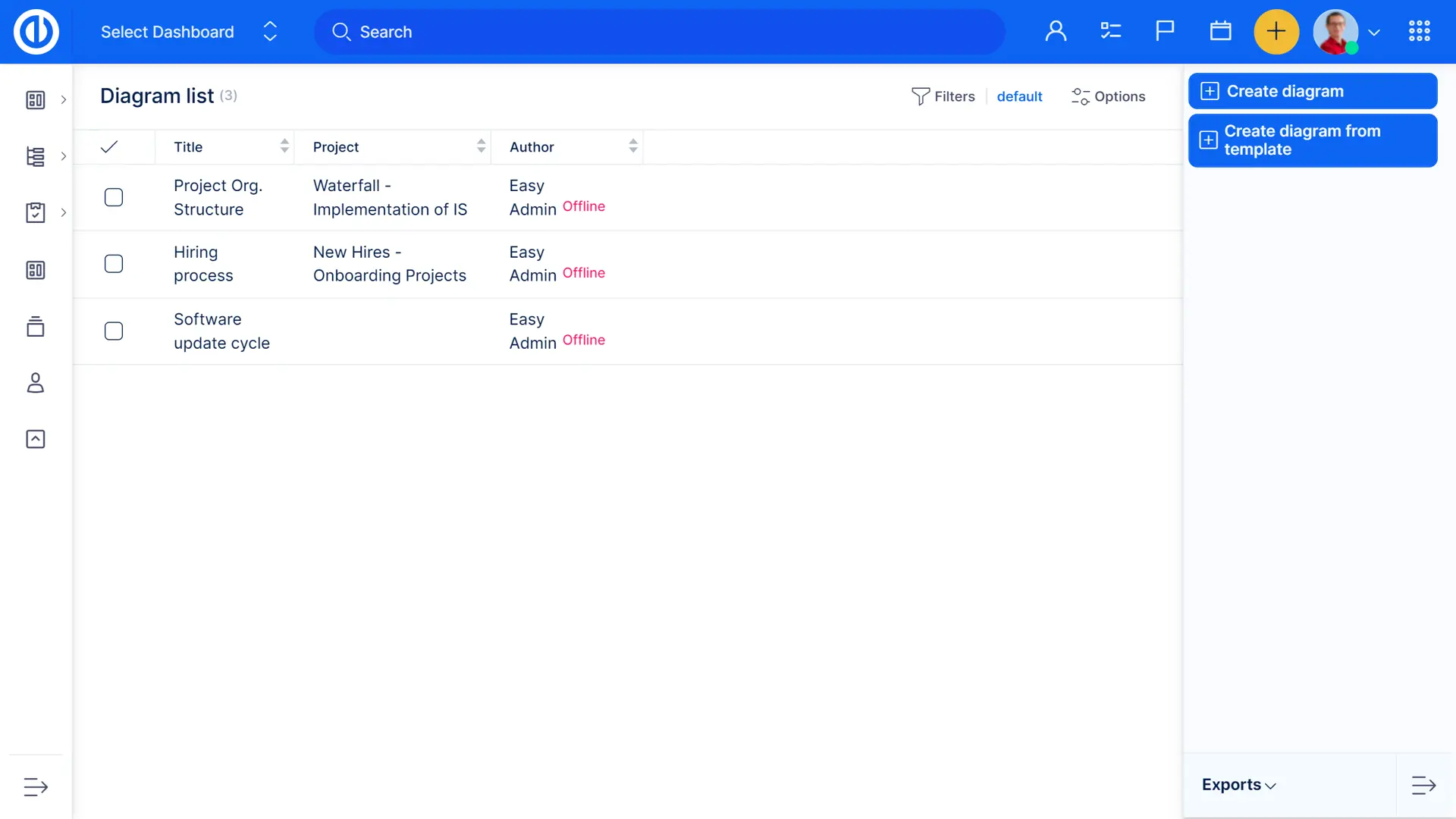 - Egyszerű diagram exportálás XML-be vagy különböző képformátumokba