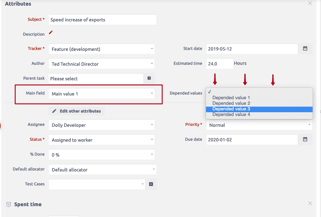 - Nuovi campi personalizzati dipendenti - abbiamo creato un'opzione su come configurare le dipendenze tra i valori di 2 diversi campi personalizzati "Elenco"