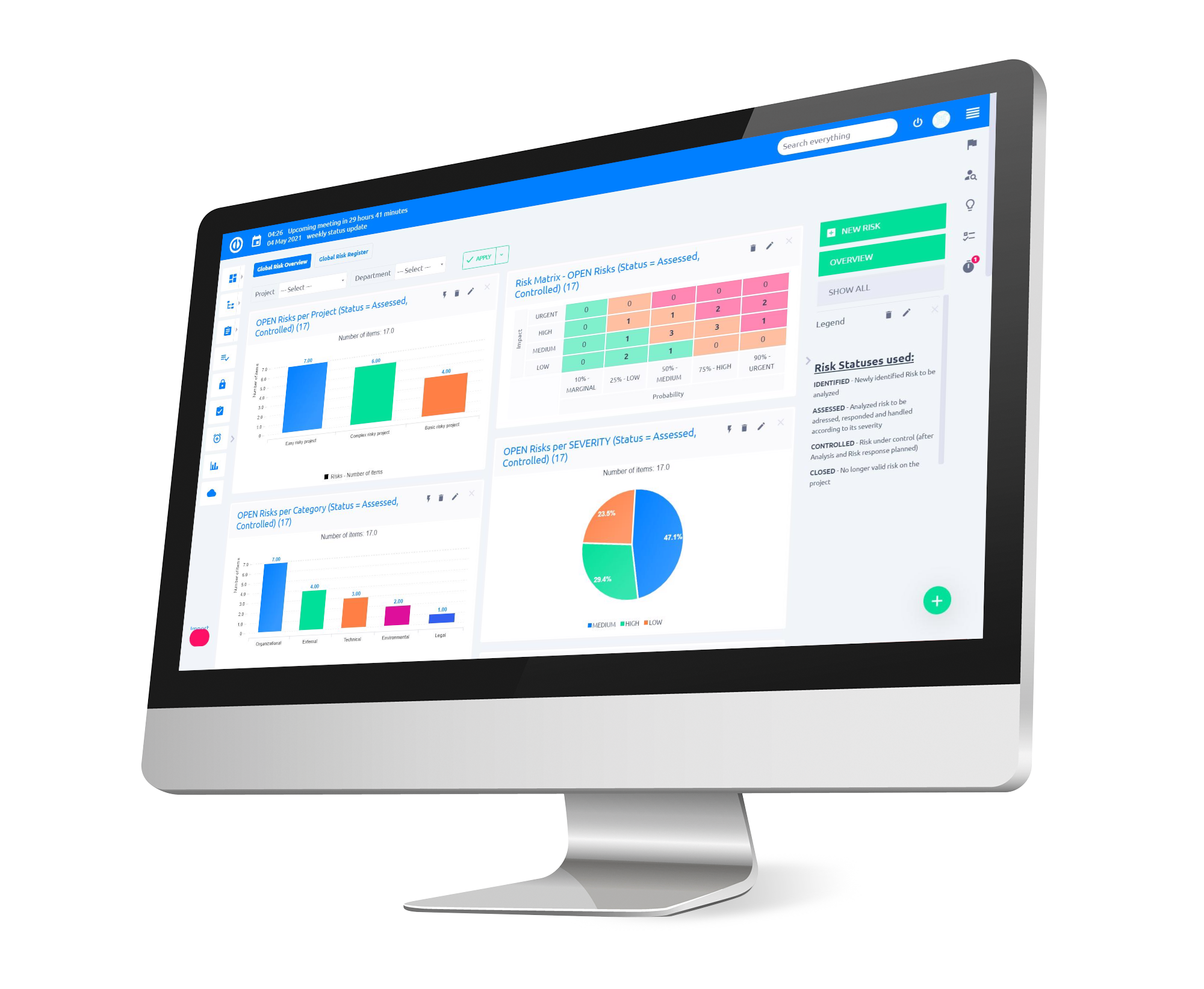 Imposta facilmente la matrice del rischio attraverso la tua organizzazione, gestisci i rischi sui progetti in corso e fornisci una segnalazione globale dei rischi e una panoramica per la gestione.