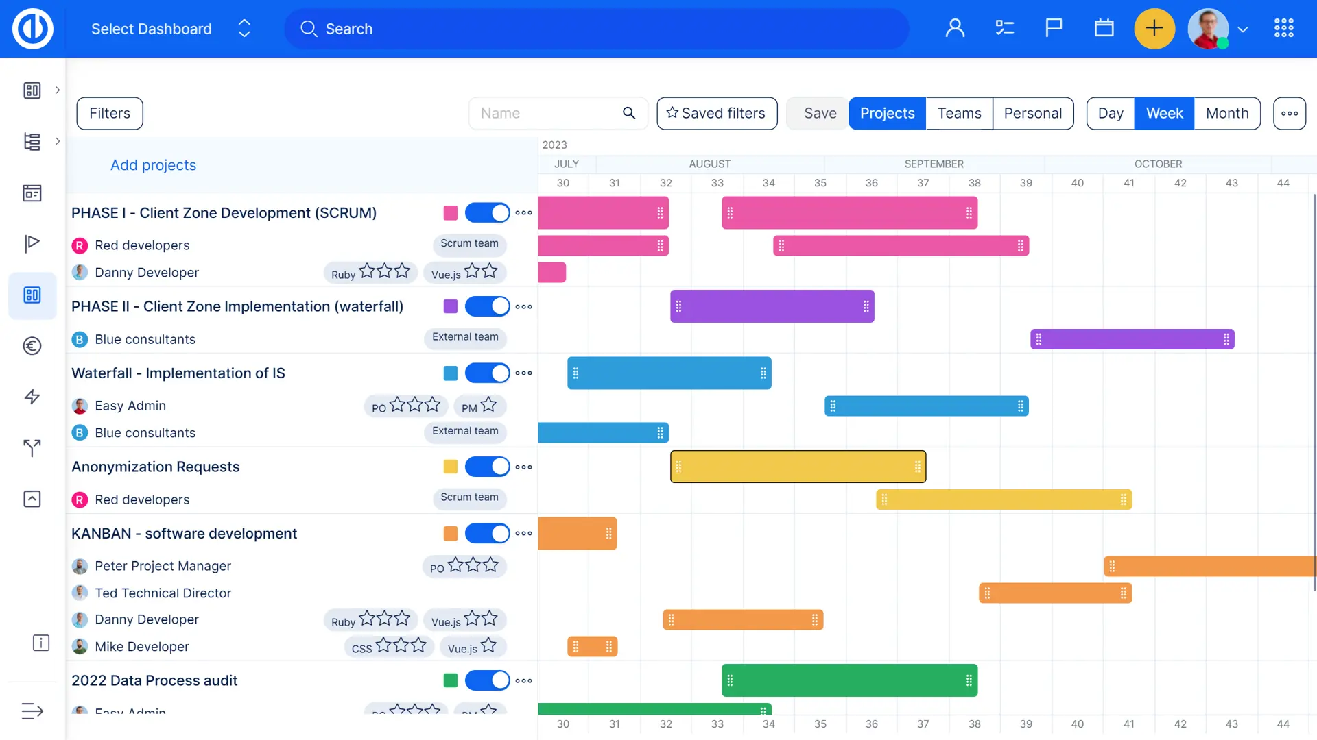 - Strumento facile e visuale per la pianificazione delle risorse dal livello superiore