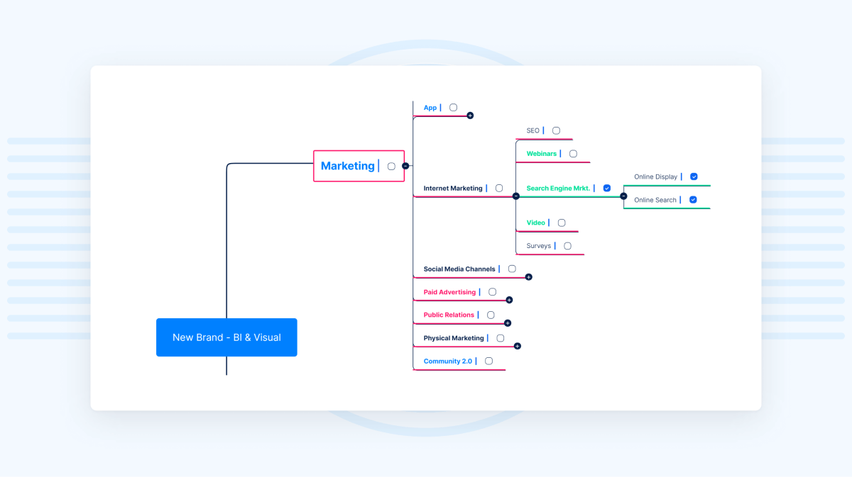 Le mappe mentali sono multifunzionali e hanno tutto ciò che un team di gestione del progetto richiede. Ti aiutano a: