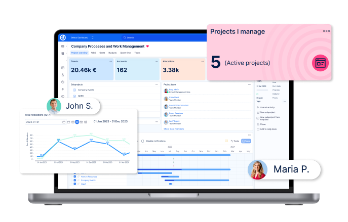 Il People Dashboard ti consente di visualizzare le informazioni sui tuoi utenti in un colpo d'occhio. Utilizza il dashboard per visualizzare i compiti degli utenti e i loro stati, lo stato di appartenenza al progetto degli utenti, il completamento del lavoro assegnato, i compiti completati, il tempo trascorso, i costi personali e molto altro!