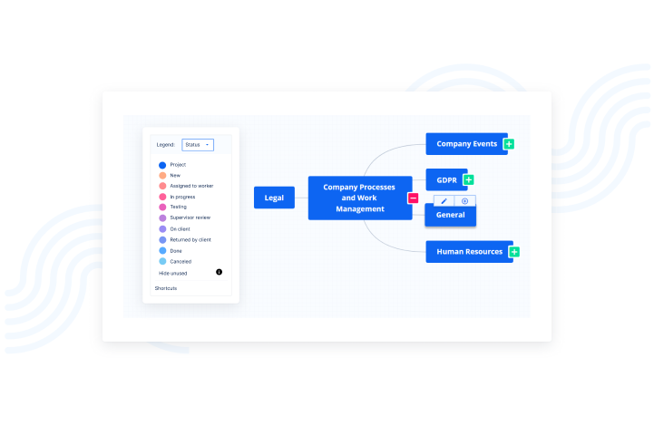 - Visualizzazione a mappa mentale dei progetti, delle attività e dei sotto-attività