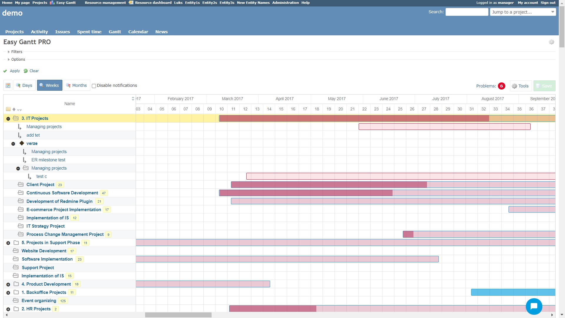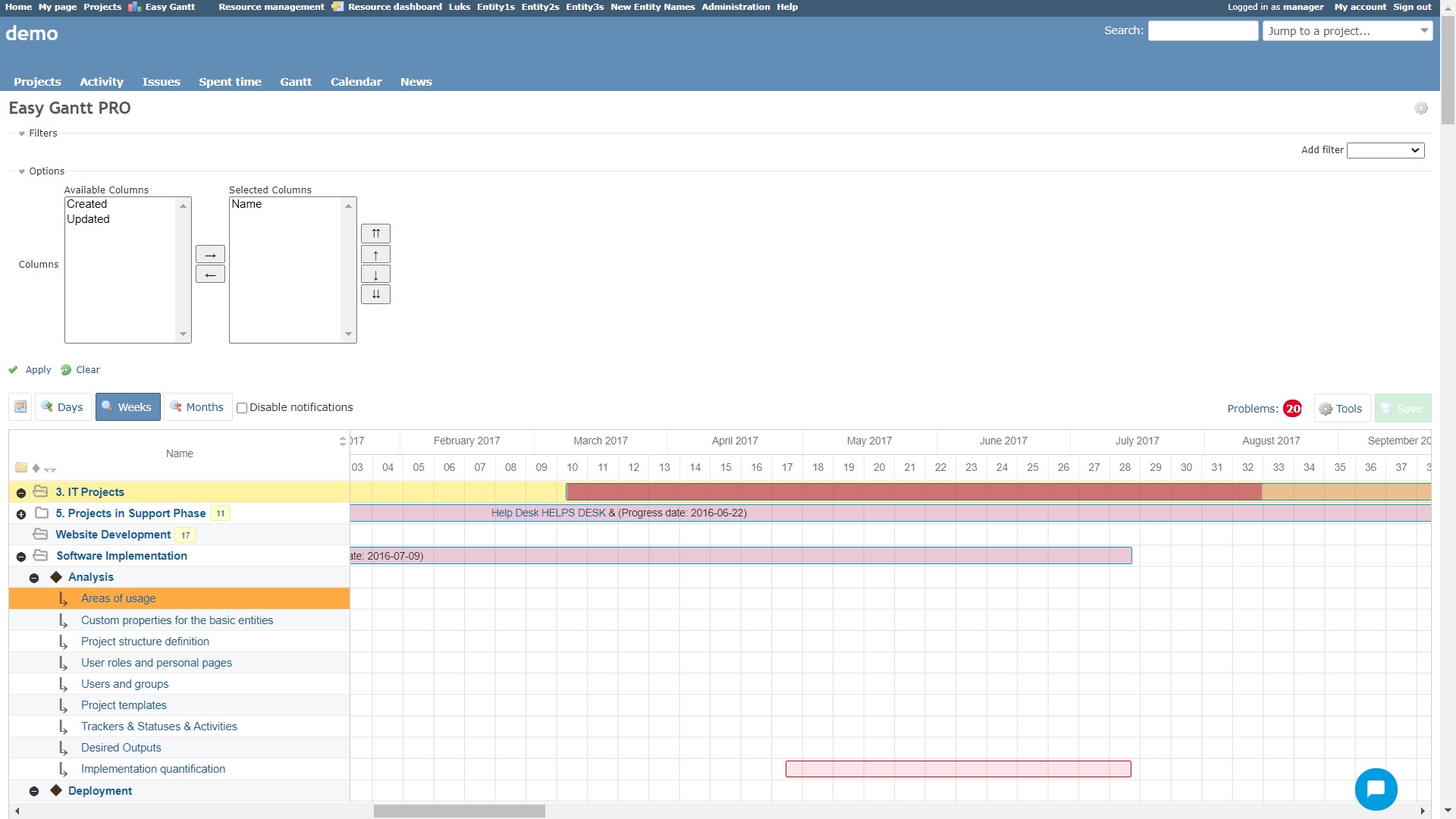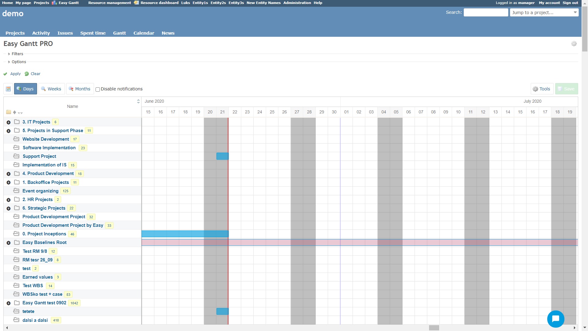プロジェクト管理では、ベースラインはプロジェクトの元の計画です。 この元の計画は、現在のプロジェクト計画と比較するために視覚化されます。 Easy Gantt は、ベースライン計画を強調表示する機能を提供します。 スケジュールを編集してもベースラインプランは変更されません。 Redmine ガントチャートを使用すると、より多くのベースラインを作成できます。これにより、プロジェクト計画のスナップショットとして機能します。.