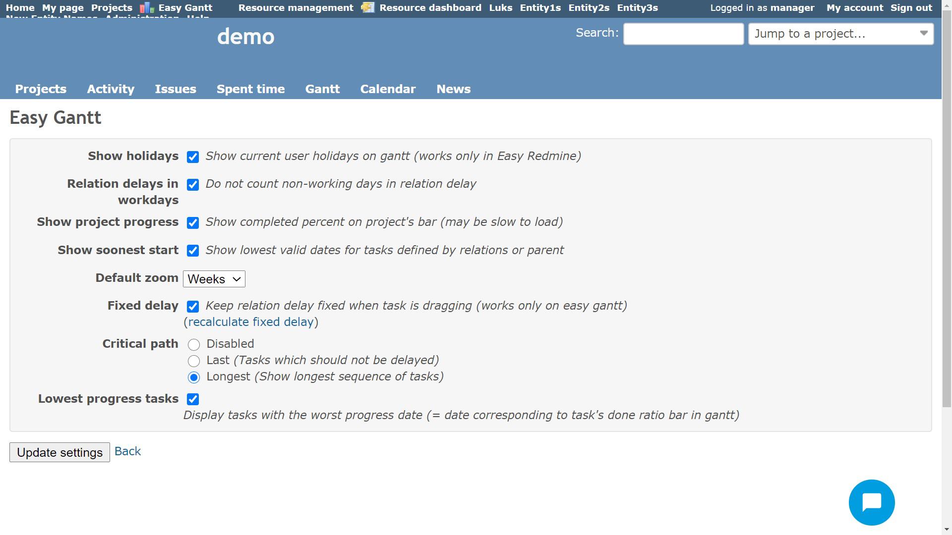 Redmine 用の Easy Gantt プラグインを使用すると、ドラッグ & ドロップを使用してタイミングを計画および調整し、チケット、バージョン、関係、子チケットを作成できます。
