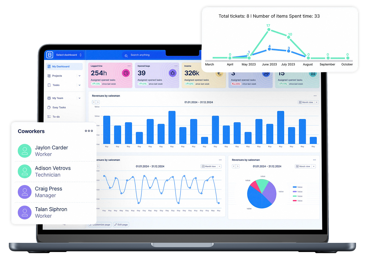 Easy8 은 Redmine을 완벽히 업그레이드하여 유연하고 고도화된 기능을 제공합니다. 새로워진 모바일 디자인과 더불어 당신이 원하는. 여러 플러그인 기능과 결합하면 프로젝트 관리를 더욱 편하게 하고, 향상된 커뮤니케이션과 사용자 인터페이스를 통해 시간을 절약할 수 있습니다. 또한 자원관리, 애자일, 비용관리, CRM, Help Desk 및 새로 추가된 DevOps 플러그인 등을 통해 더 넓은 확장성을 제공합니다.