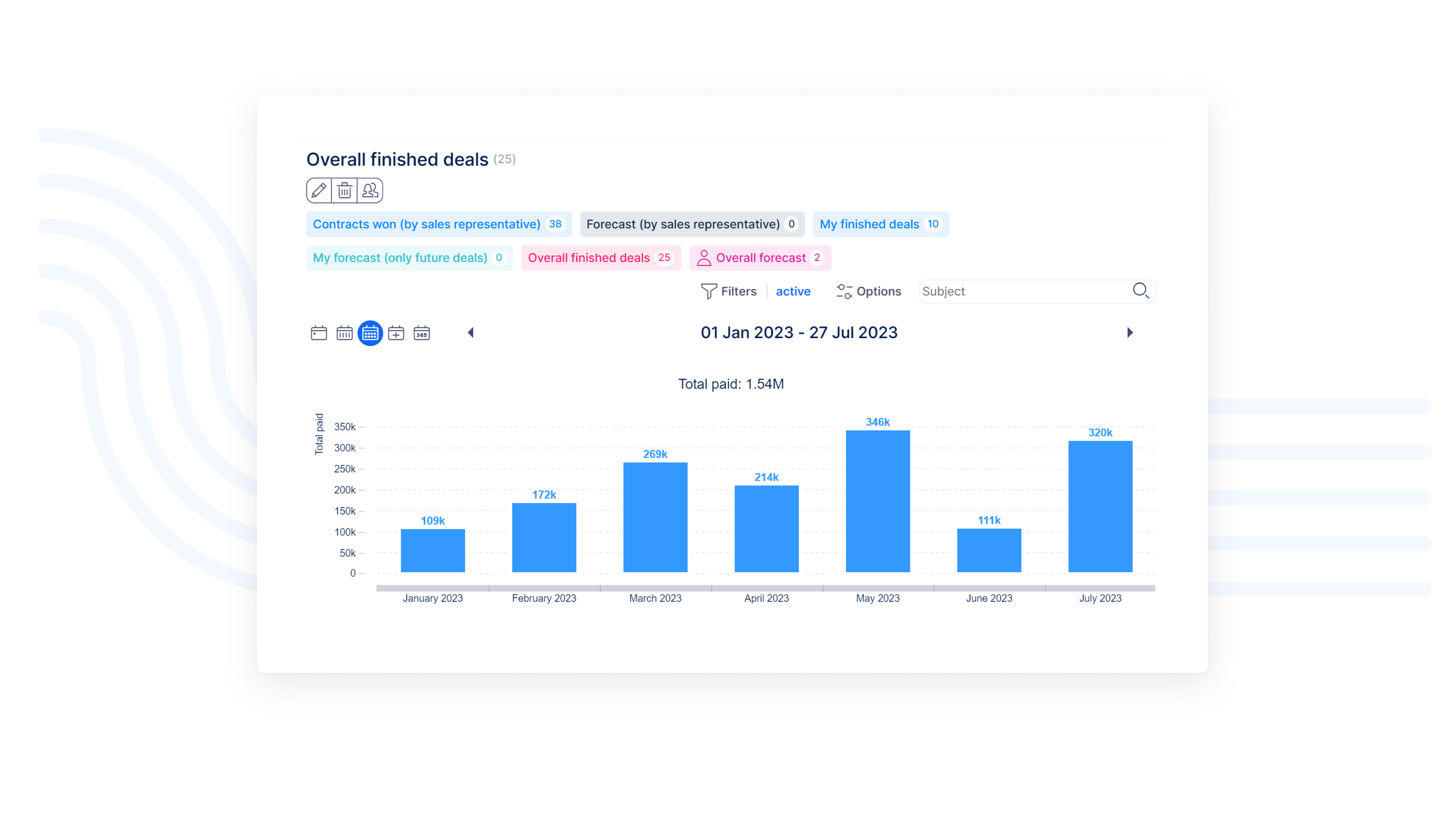 새로운 B2B CRM에서는 사용자가 예상 이익 영업 리포트를 사용자 정의로 생성 할 수 있습니다. 또한 역할 기반 시나리오에 따라 세일즈 총괄자는 수익, 세일즈 활동 등을 전체적으로 파악 할 수 있습니다.