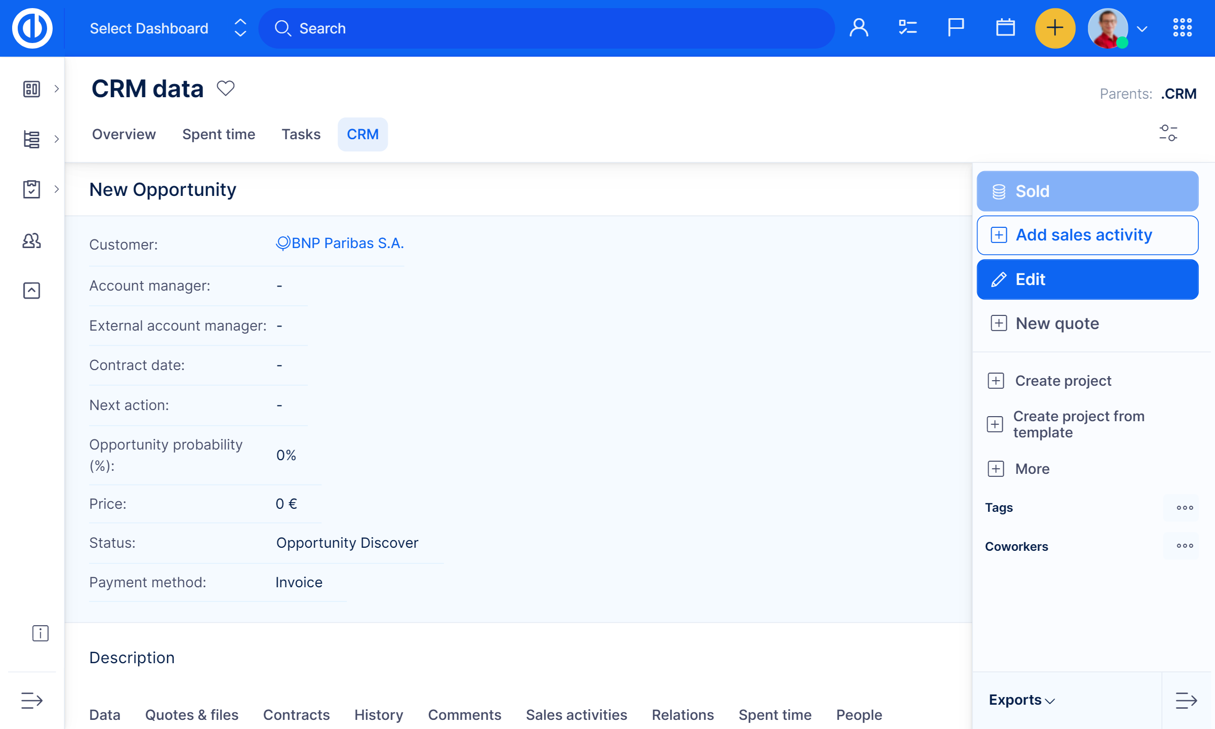 B2B CRM은 운영 부서에 고객사의 관리를 주체적으로 관리하기 위한 목적입니다. 프로젝트 과정 및 지속적인 지원 뿐만 아니라 영업 운영에도 관련이 있습니다. 이 모듈은 간접적인 B2B 조직 또는 영업의 모든 과정을 함께 파악 할 수 있습니다.