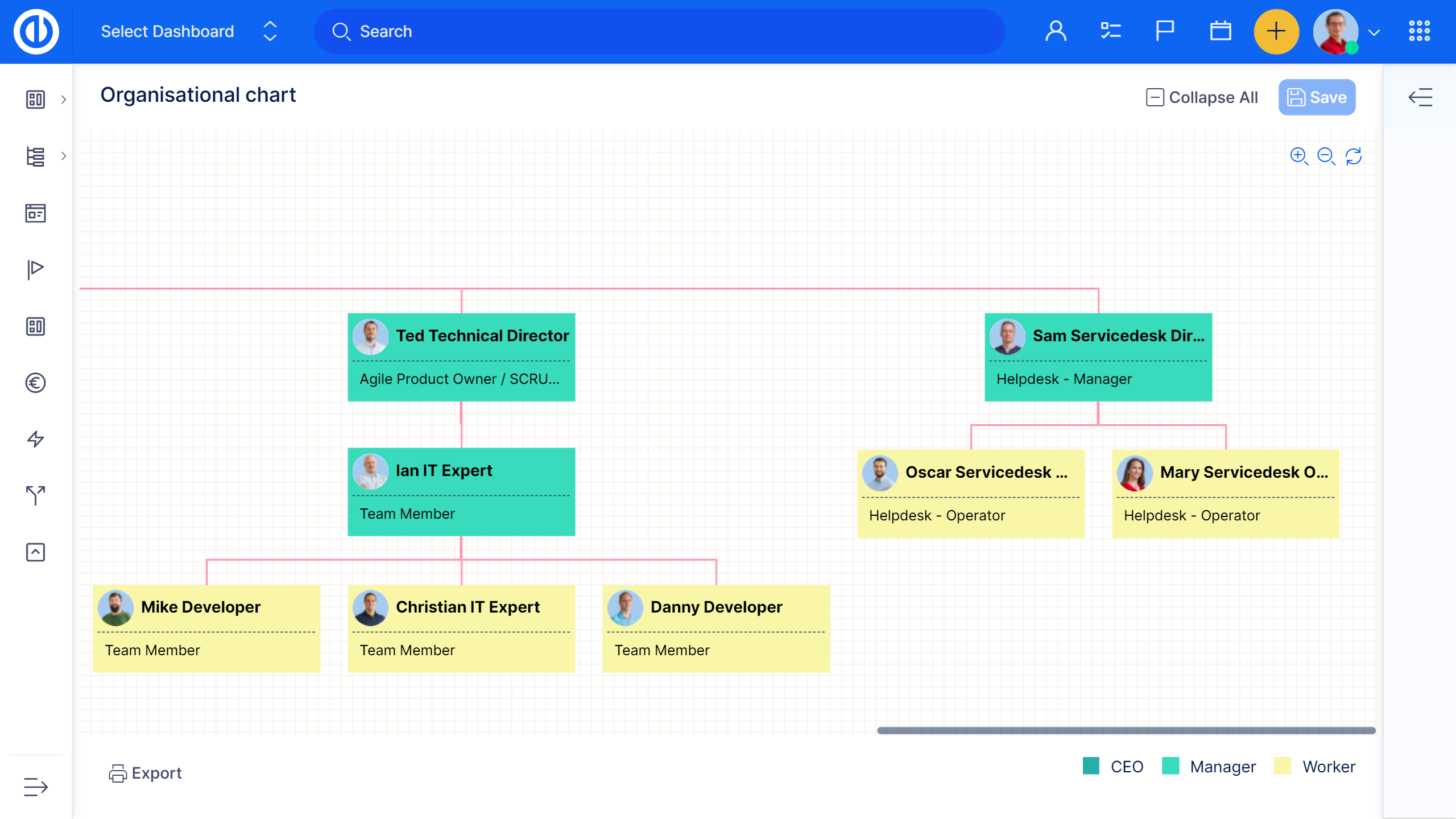 조직관리를 통하여 프로젝트의 업무 할당, 조정 및 감독 등을 목표 달성을 위해 표준 방법을 정의하는 데 도움이 됩니다. 이 밖에도 휴가승인 기능도 가능 합니다.