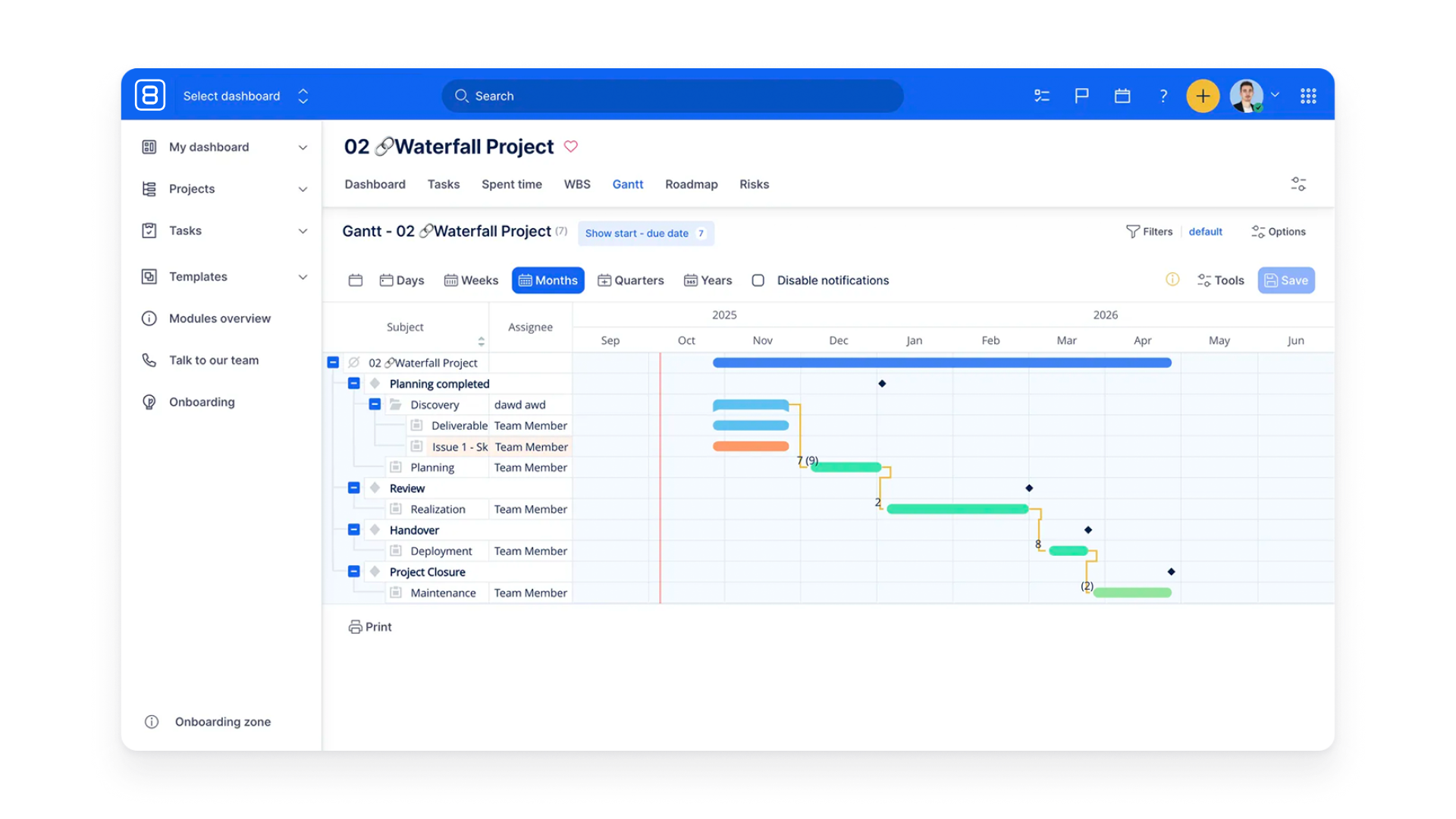 Check the result side-by-side to confirm your schedules, owners, and timelines match. Make sure your Gantt, WBS, and reports work as expected in Easy8 before you switch your team over.