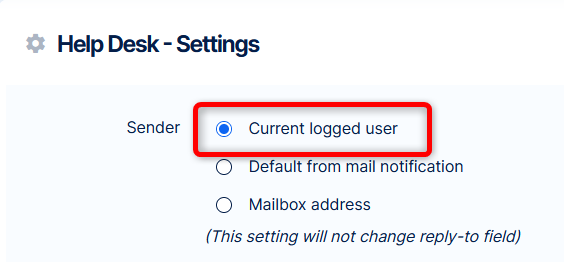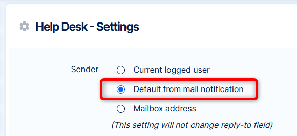 Przejdź do Więcej >> Helpdesk >> Ustawienia Helpdesku i zmień nadawcę e-mail na "Domyślny z powiadomień e-mail"
