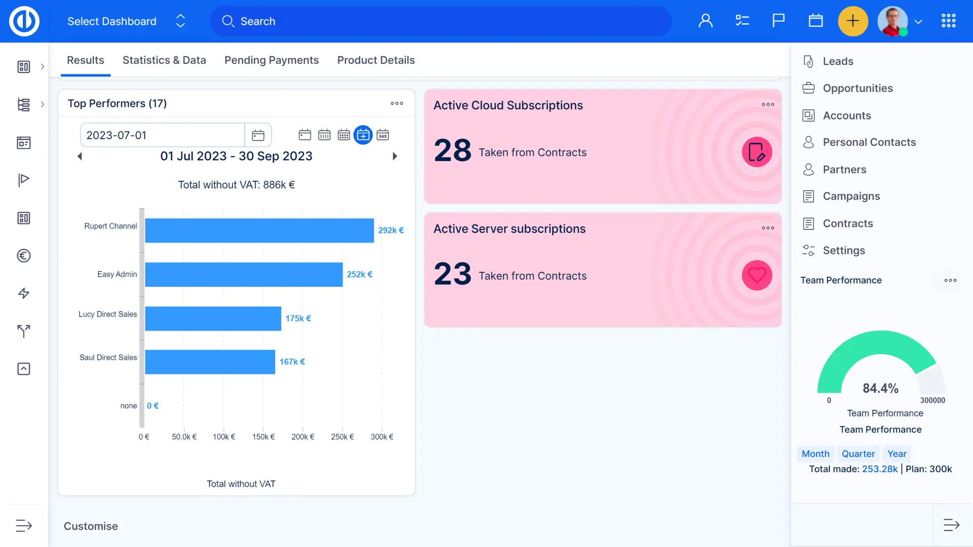 Predefiniowany pulpit osobisty odpowiedni dla roli menedżera finansowego jest zaprojektowany w celu zapewnienia szybkiego przeglądu aktualnej wydajności związanej z zarządzaniem finansami.