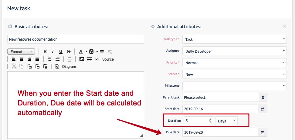 - Obliczanie daty końcowej na podstawie czasu trwania zadania - pozwól, aby data końcowa była automatycznie obliczana na podstawie czasu trwania zadania dla szybszego tworzenia zadań