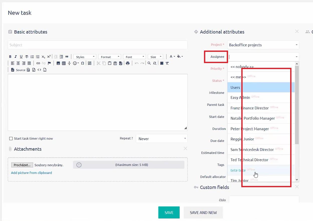 - Status obecności wykonawców zadania - wybierając wykonawcę zadania, widzisz jego/jej status obecności