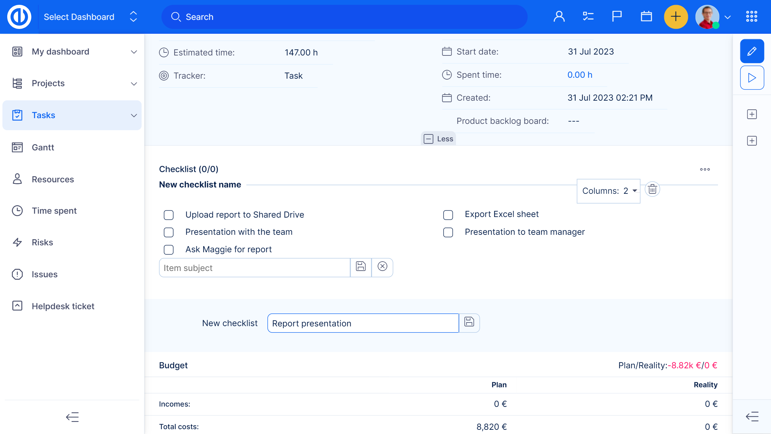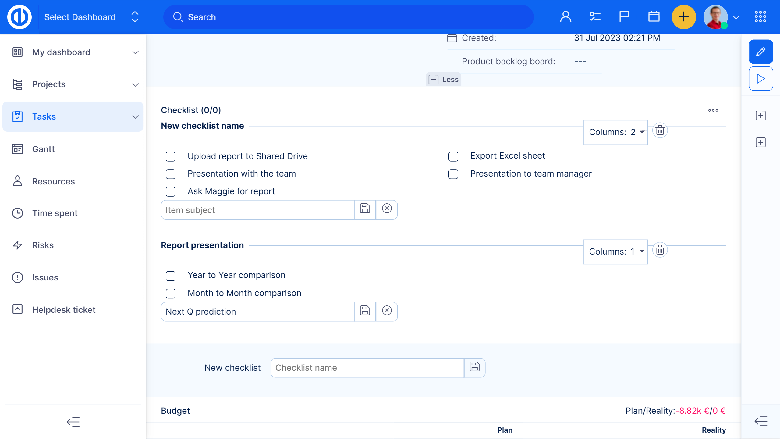 - Checklists templates