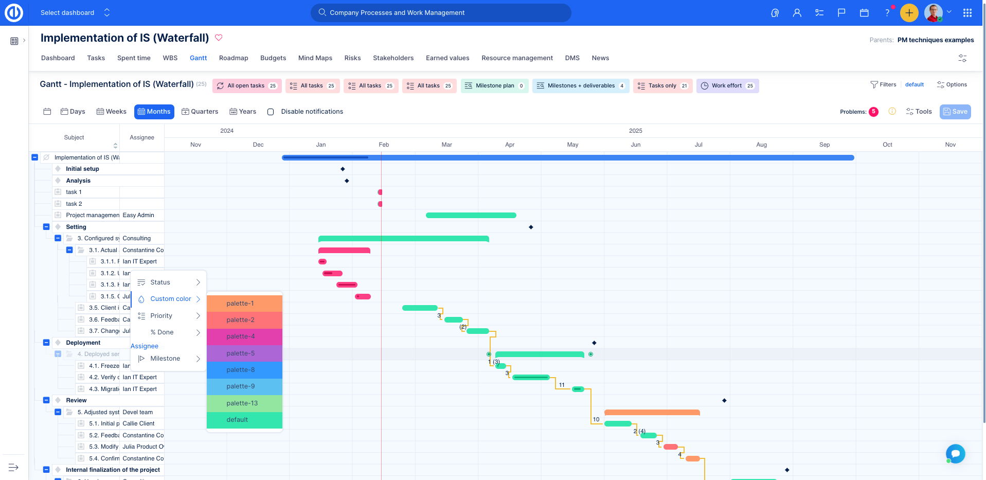 - Display all project tasks, sub-tasks, and milestones on a timeline.