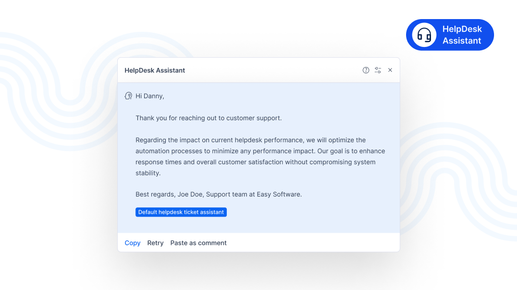 - Screenshot understanding: AI can read images attached to tickets and generate accurate responses based on their content.