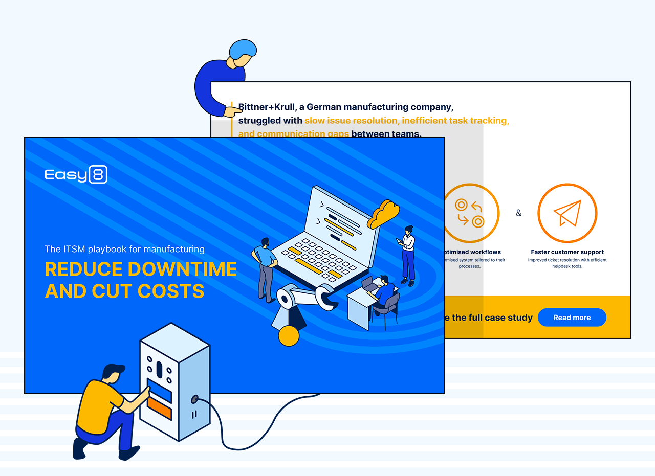 Discover how IT Service Management (ITSM) can help you overcome these challenges. Our free playbook gives practical advice on how to streamline operations, reduce risks, and cut costs with smart ITSM practices tailored for manufacturing.
