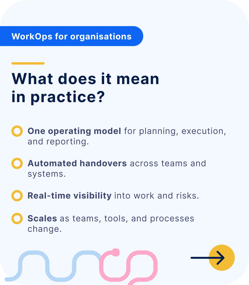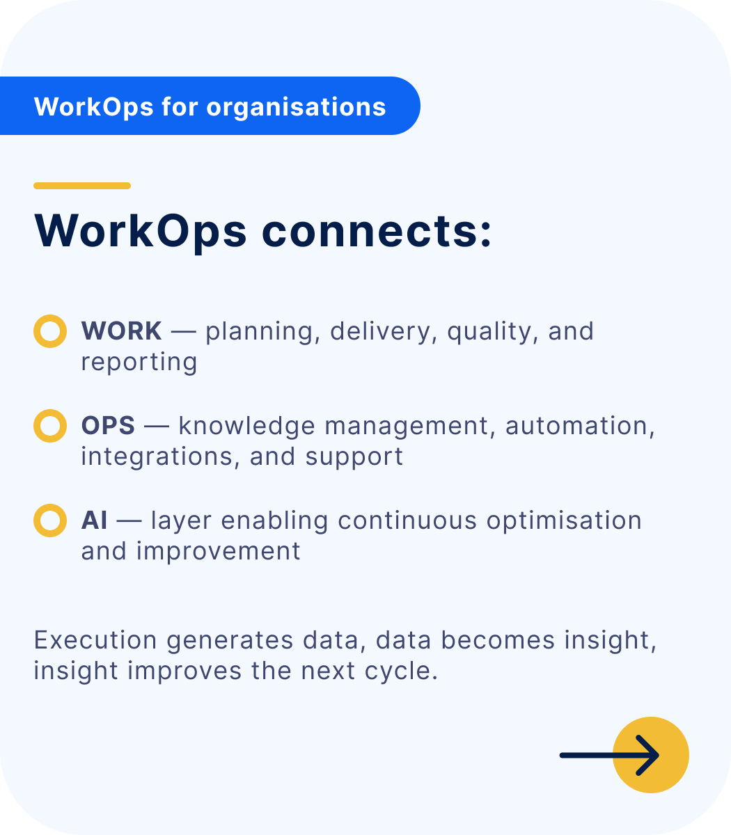 WorkOps defines how work runs in modern organisations, where teams use many tools, operations are cross-functional, and change is constant.