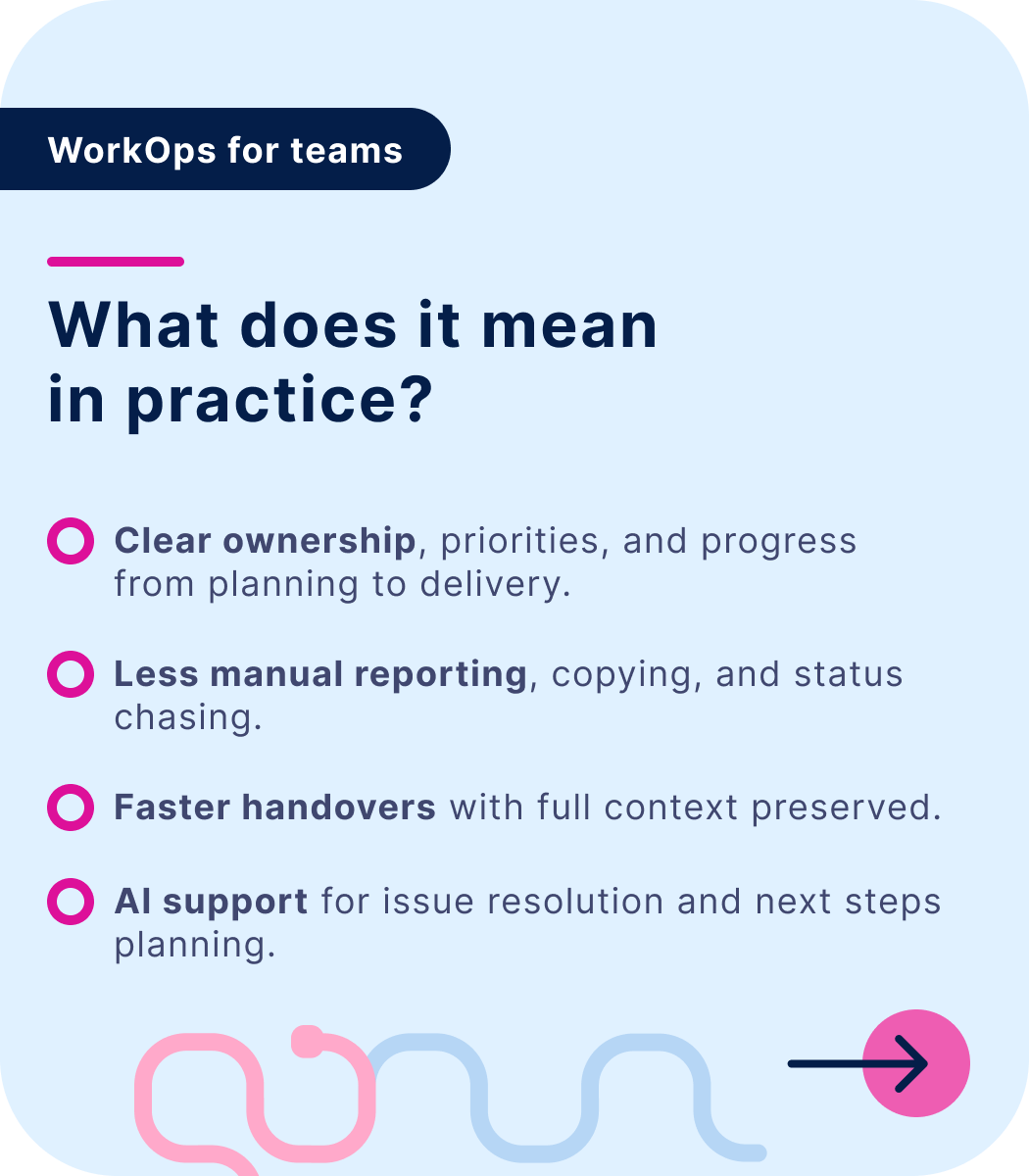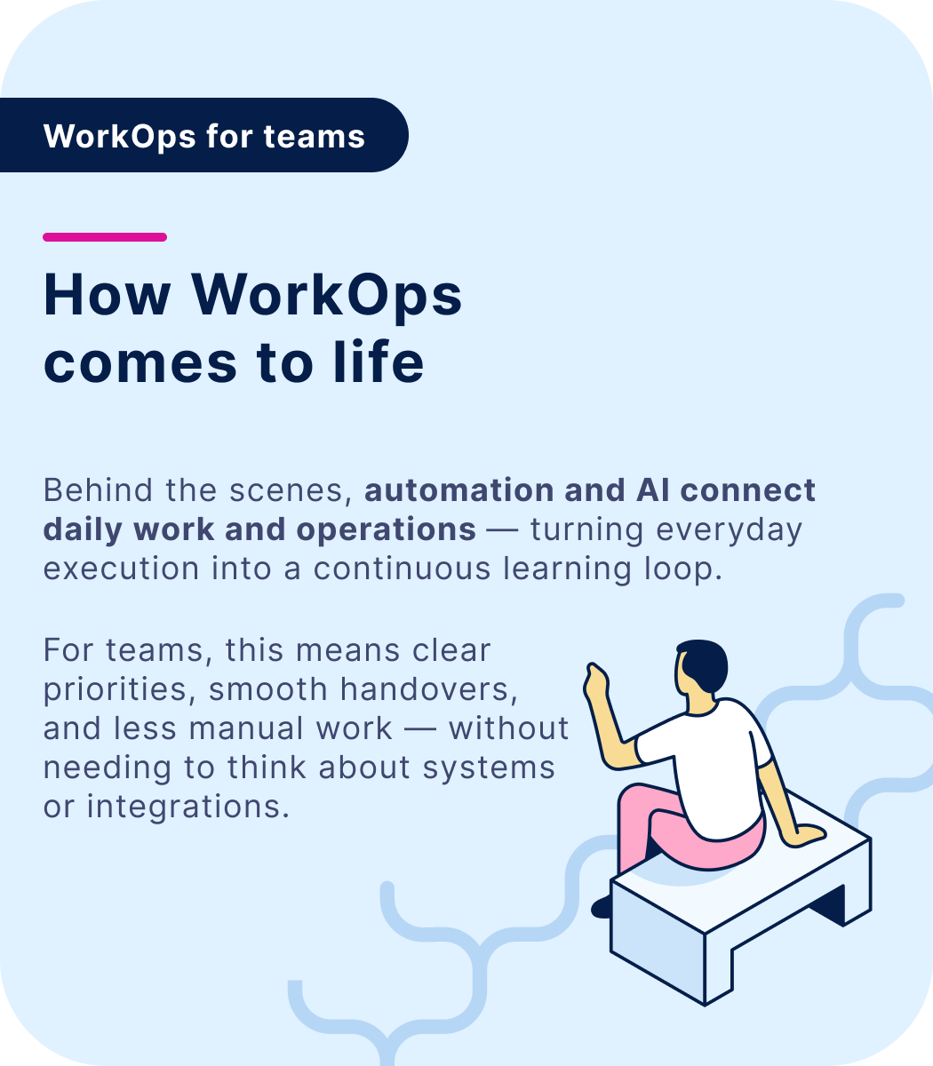 Powered by automations and AI, WorkOps aligns how work is planned, executed, and improved — without replacing your current tools.