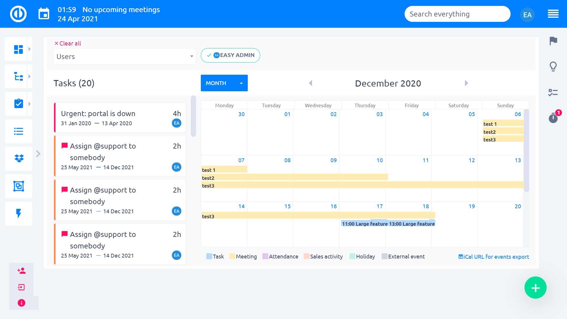 All-in-one calendar for tasks, meetings, attendance & CRM
