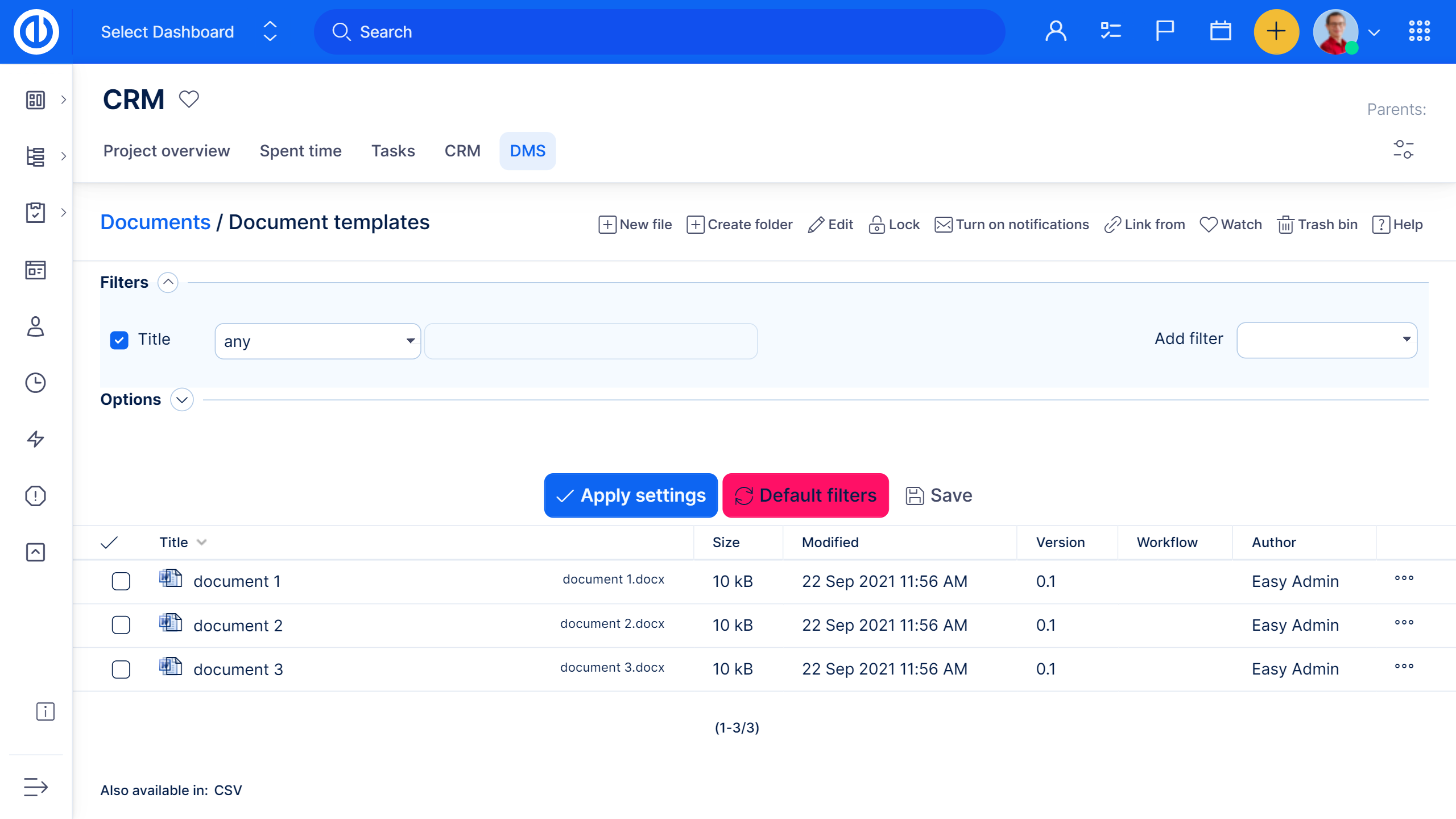 Document Management System plugin provides quick access to all your files and documents and their management directly from Redmine.