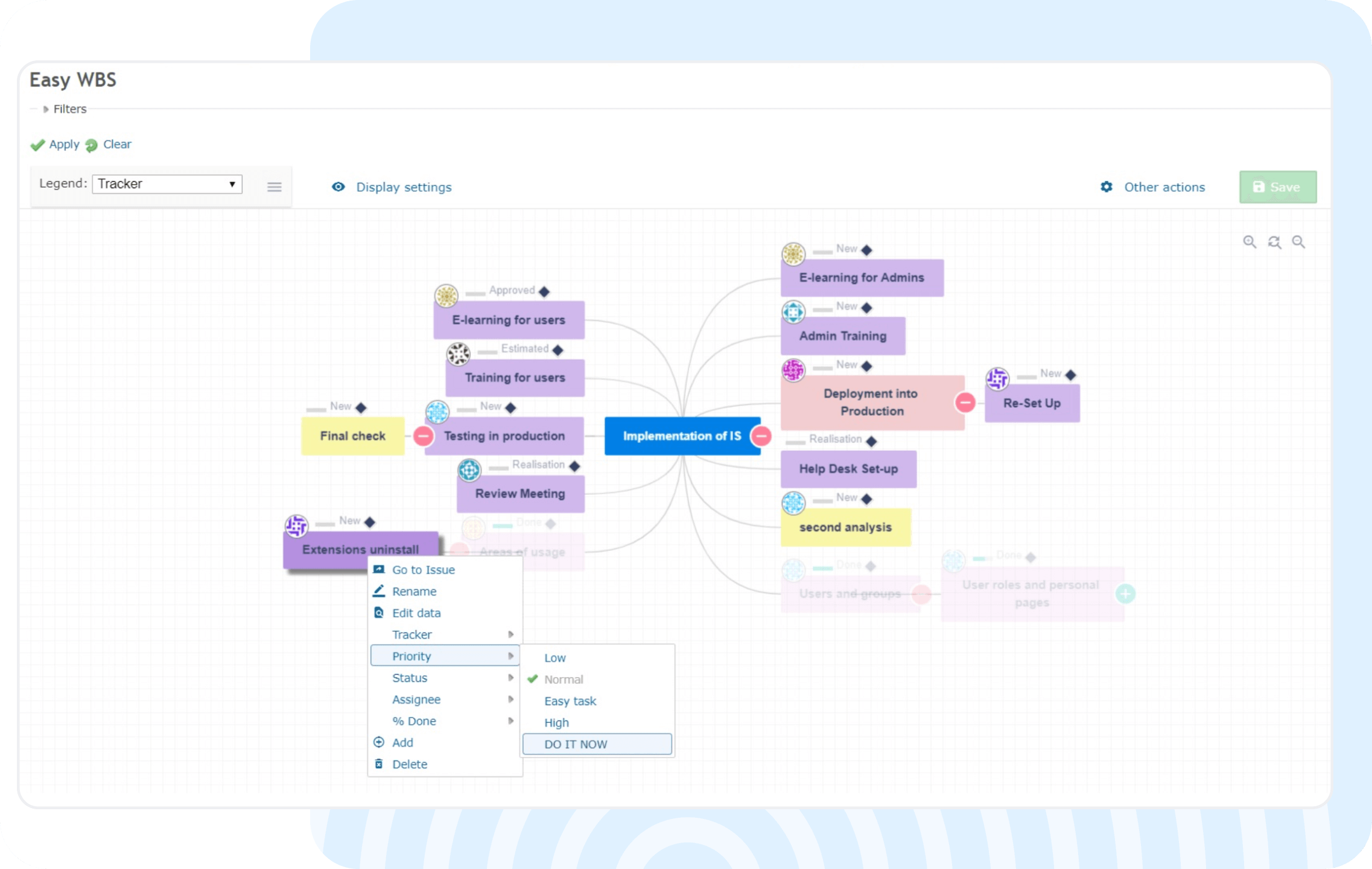 Redmine wasn’t built for complex projects, but now it is. Turn overwhelming workloads into clear, structured, and actionable plans with Easy8’s Work Breakdown Structure (WBS).