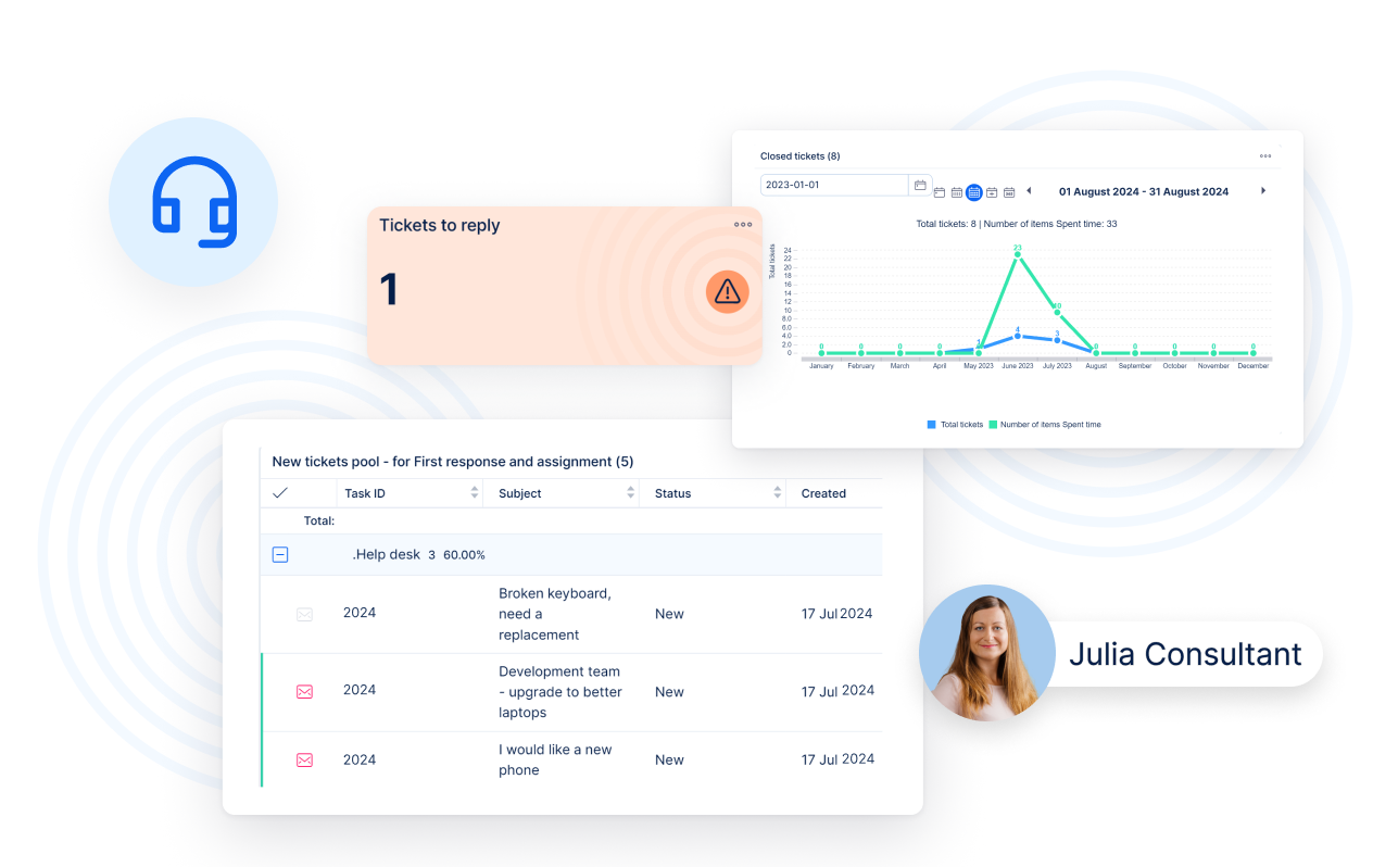 To ensure seamless IT support, you need efficient service requests and incident management. Easy8 integrates IT service management capabilities, allowing you to streamline helpdesk operations. Easily track and prioritise tickets, manage service level agreements, and improve response times. Our solution empowers your team to provide exceptional support, enhancing user satisfaction.