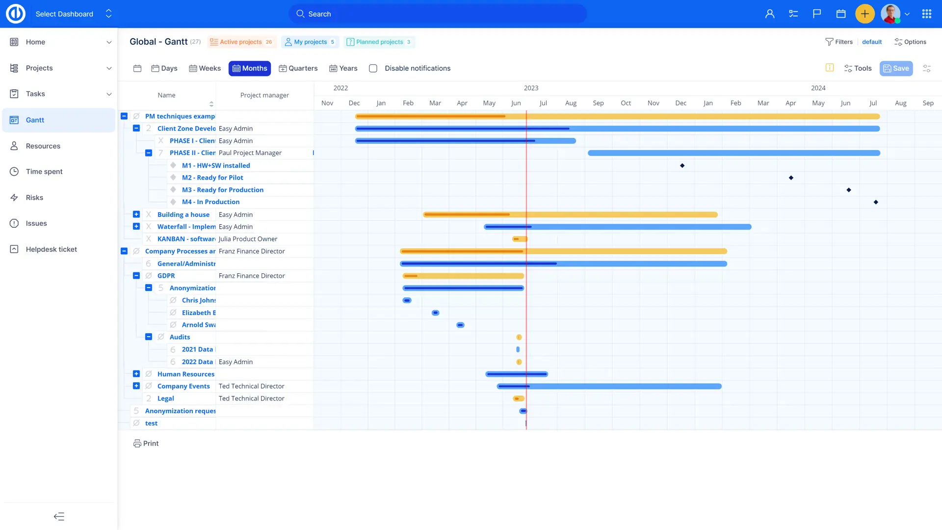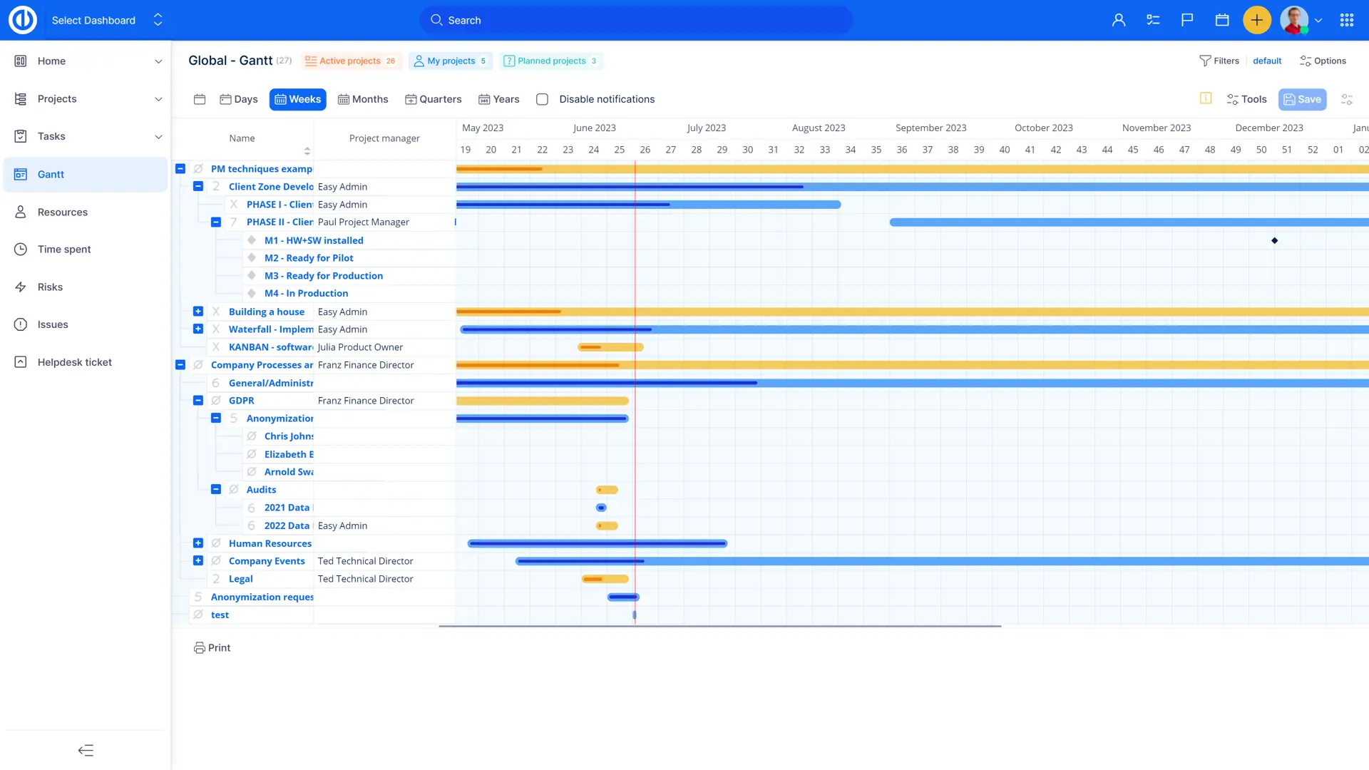 - Projelerin bir zaman çizelgesinde görselleştirilmesi - proje Gantt çizelgesi portföyü